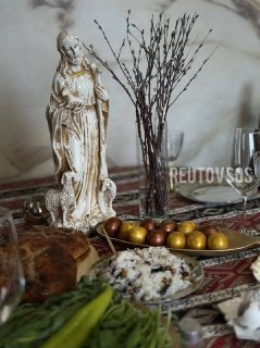 Лежали под лавкой в земле , достали и положили на лавку.