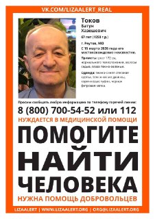 Пропал Токов Батун Хазешевич, 67 лет.