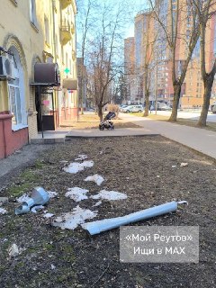 ❗ Уважаемый Евгений Книга, загляните на Ленина 14. Тут лифтов нет, зато с зимы валяются водосточные трубы. Первая линия одной из главных улиц Реутова🤷